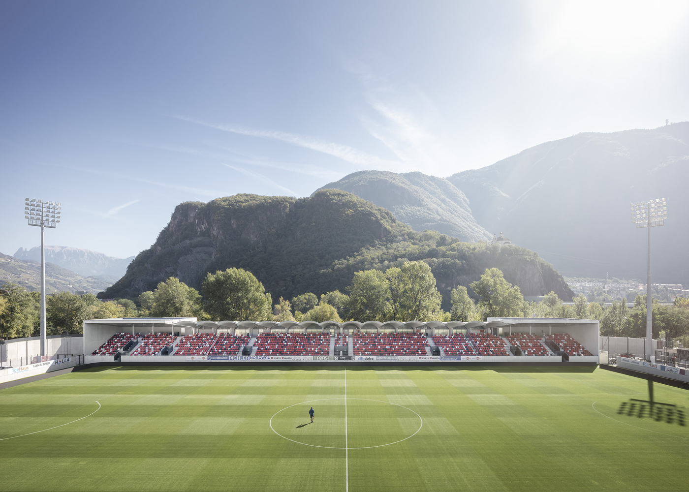 The "Zanvettor" Stand, built behind the stadium's main gate, is a new structure in the minimalist style. It is protected as a historic monument. The monumental entrance has been carefully integrated into a fair-faced concrete plinth, topped with a roof made of steel lattice girders. The space beneath the stand houses all facilities related ……